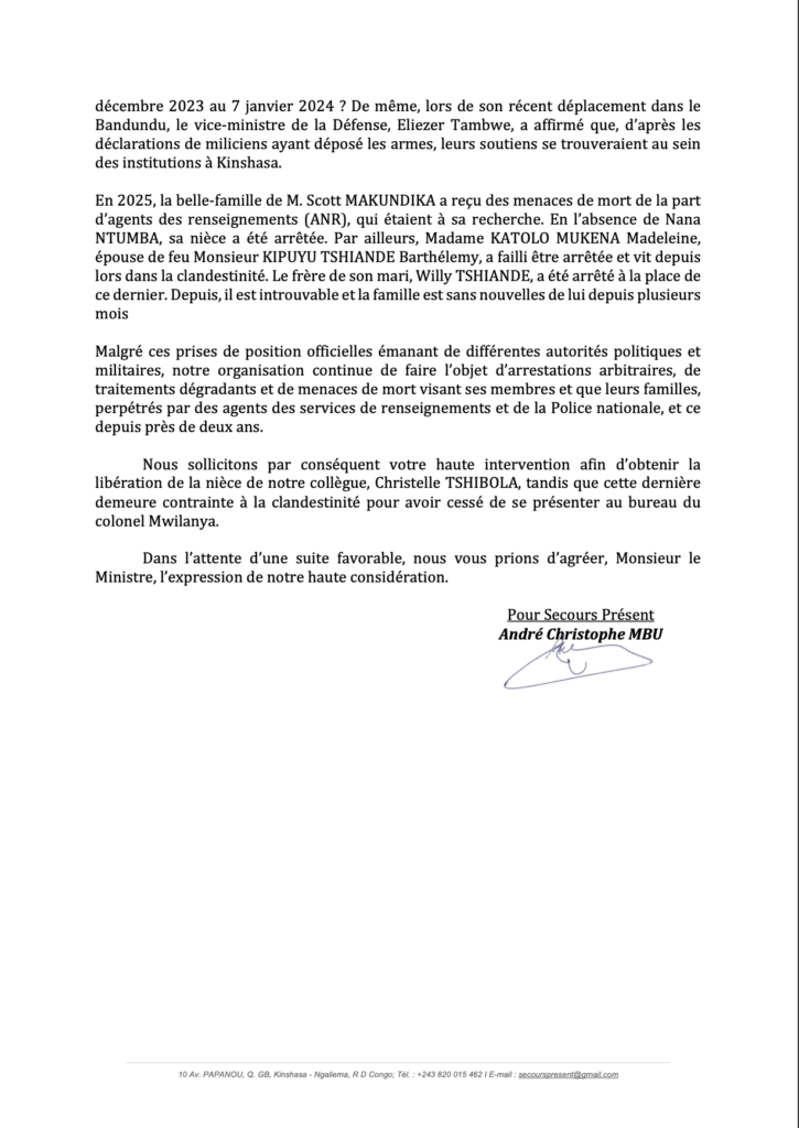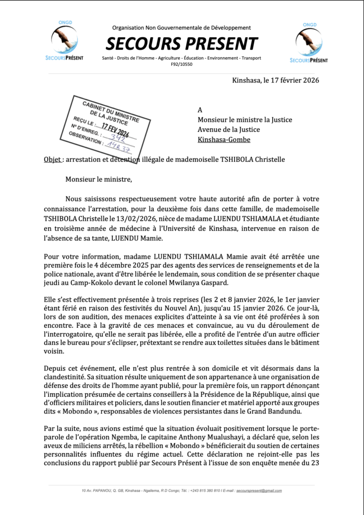La machine à écraser toute voie dénonçant l’injustice. L’association ” Secours Présent ” accuse… Kabeya VancyFebruary 19, 2026March 8, 2026